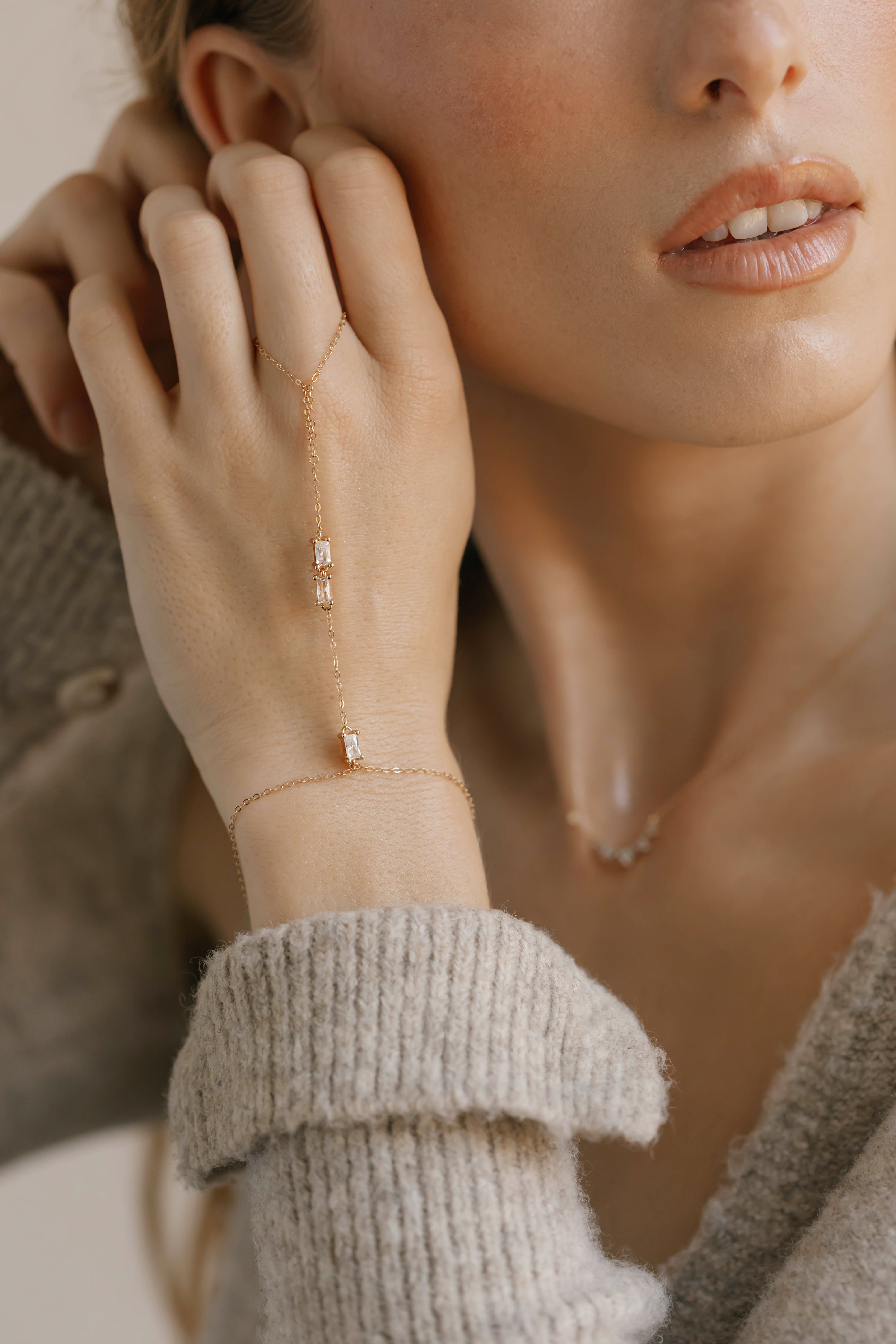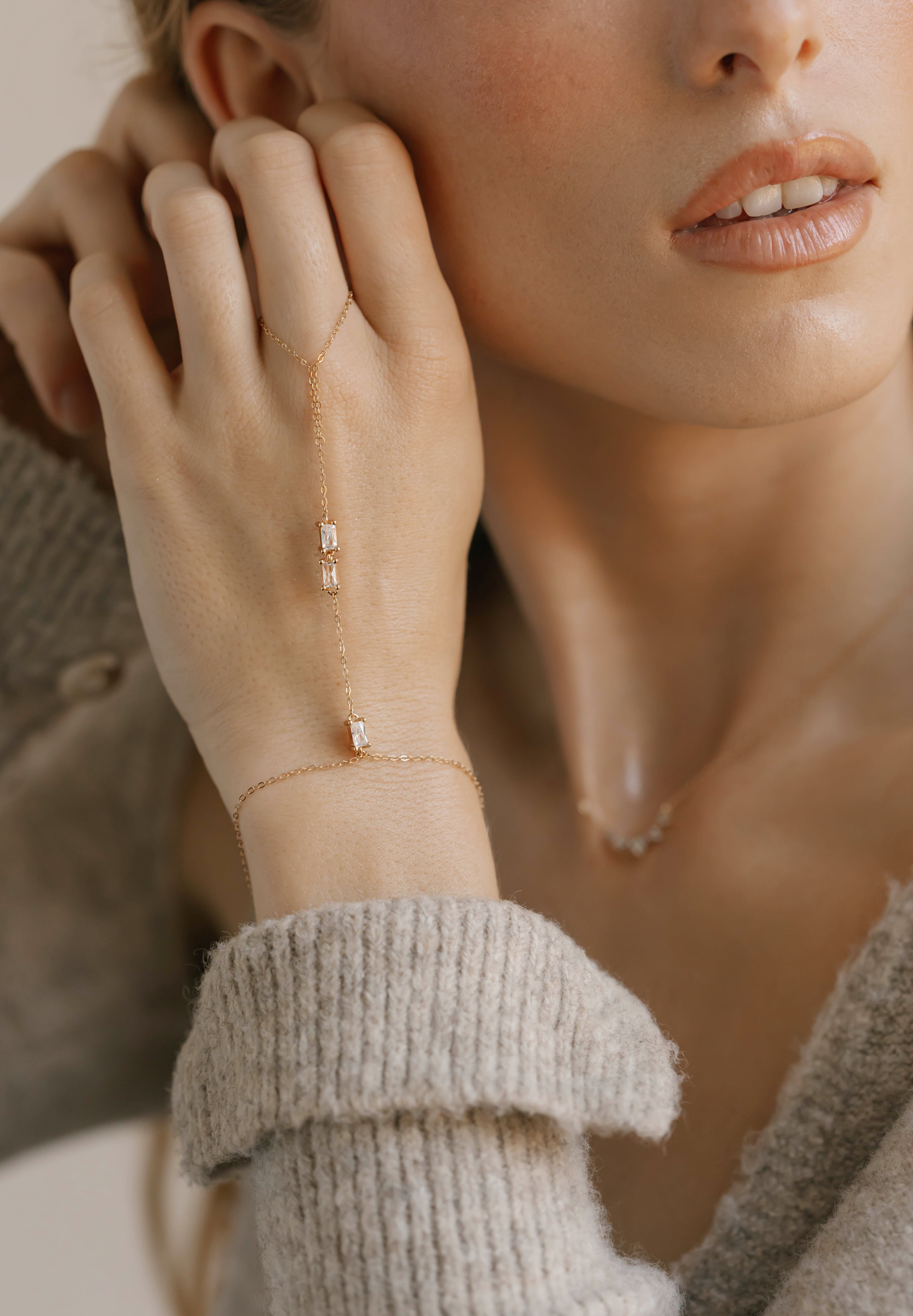 Our Carmen Hand Chain is a graceful statement accessory that gently wraps around your hand with a delicate design. This gorgeous piece brings elegance and a touch of boldness to complement your style.