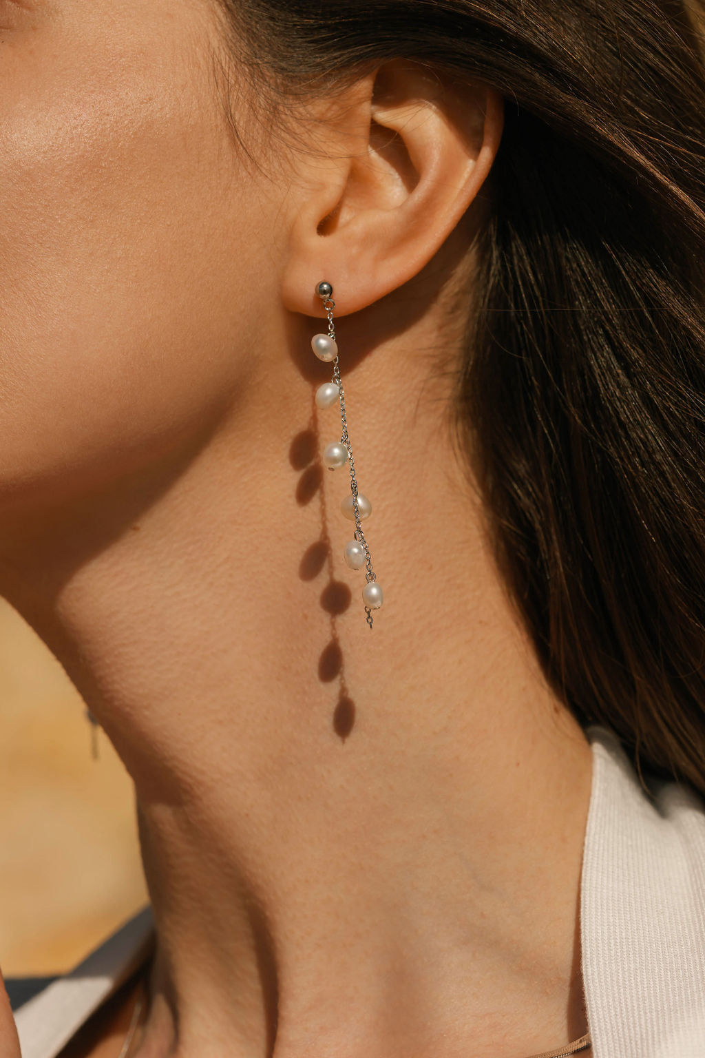 Elevate your look with our Cascade Pearl Earrings. These dangly pearl earrings exude elegance and luxury. The perfect touch of sophistication for any outfit.