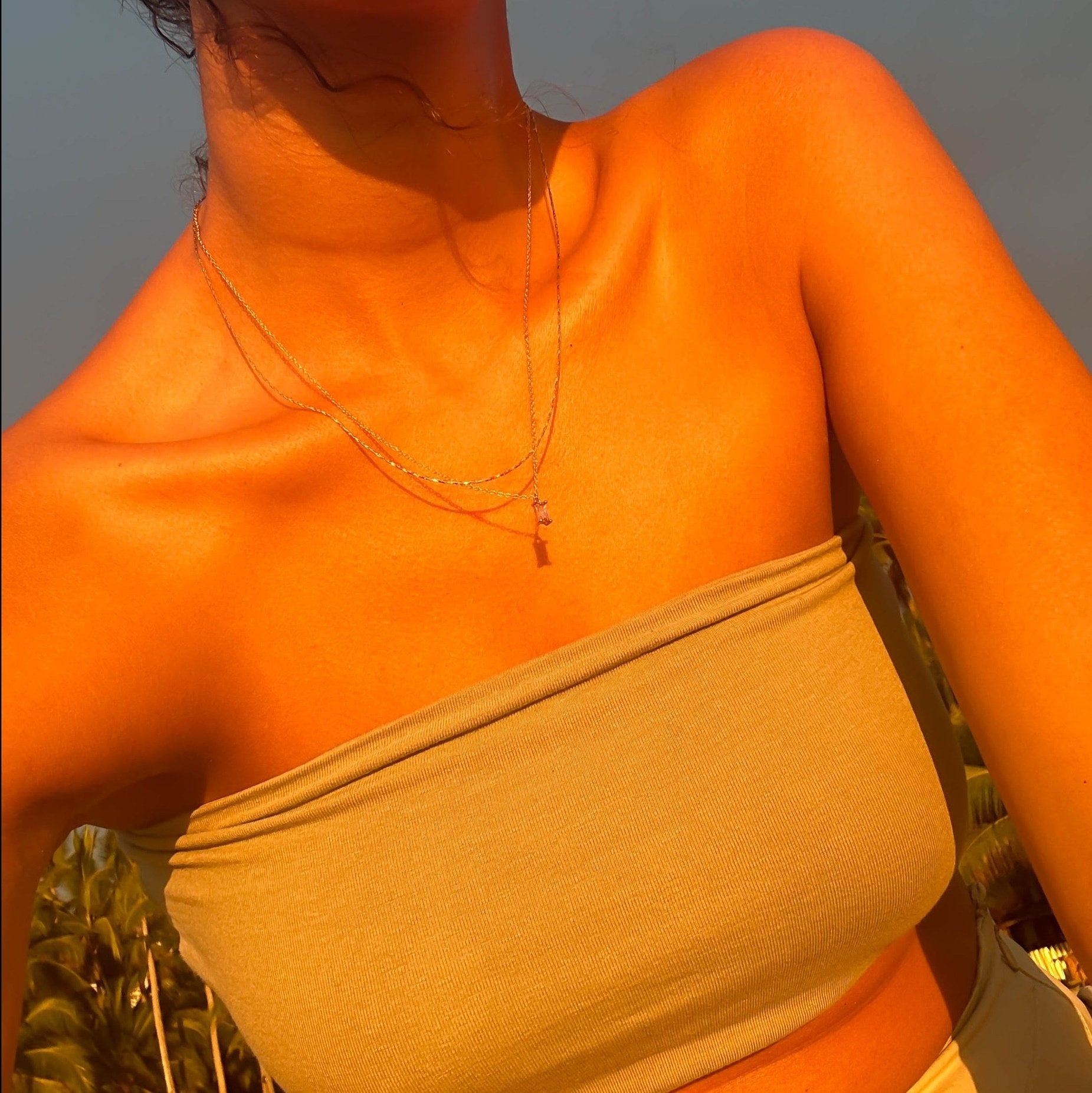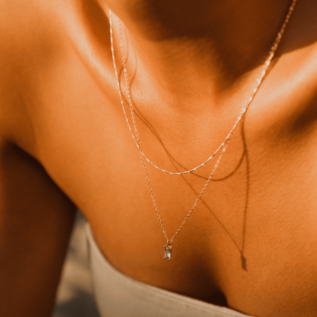 Our effortless Golden Hour Chain and our beloved Celia necklace stacked for an effortless addition to your everyday outfits.