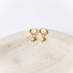 Effortless, gorgeous beaded huggies with the stunning cyra opal sun charm pendant. Perfect to add to your ear party, or as a subtle statement on their own.