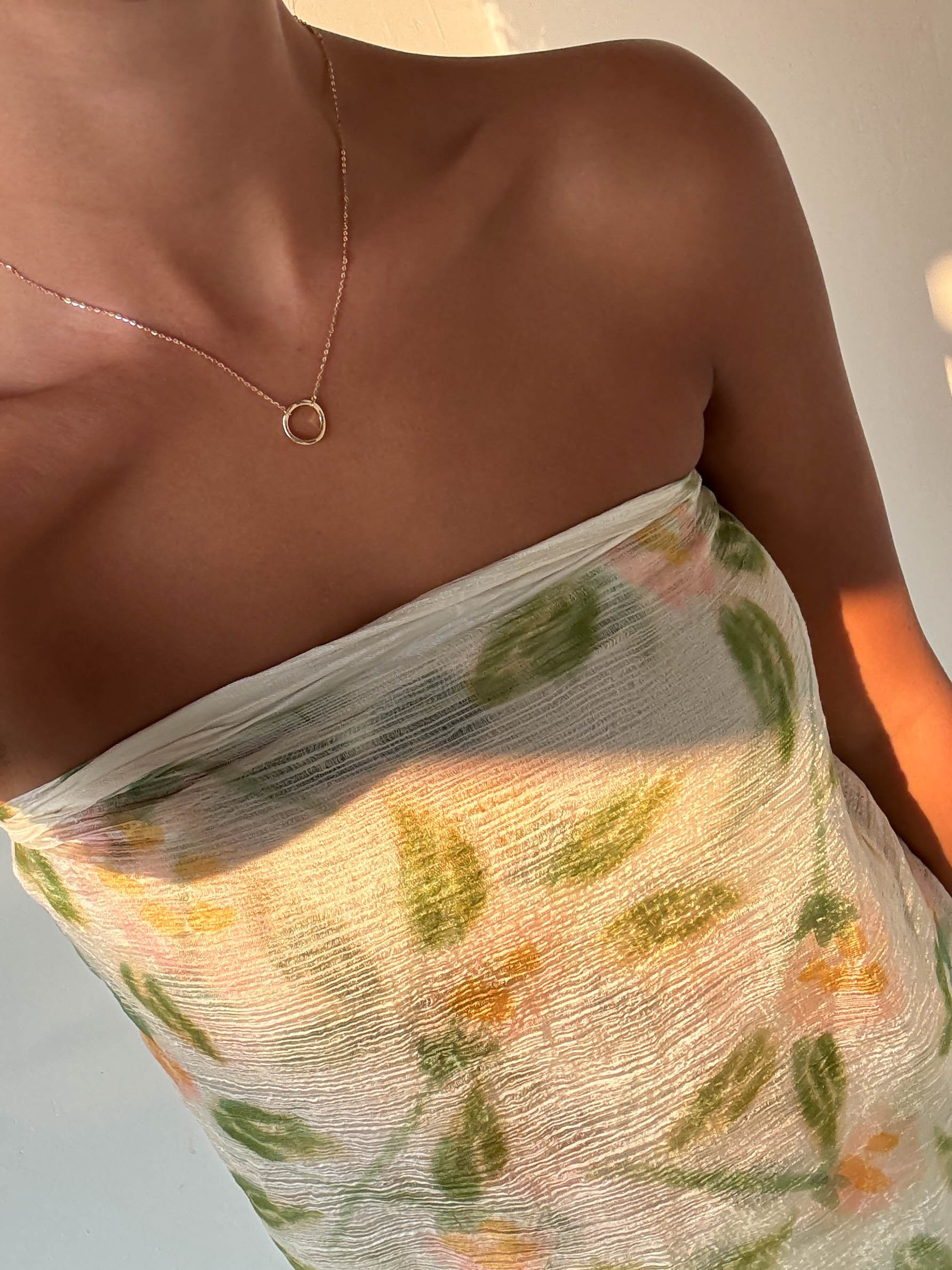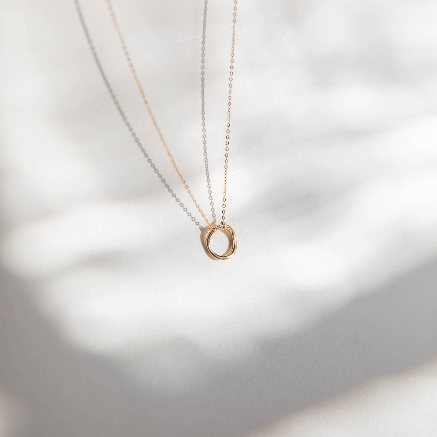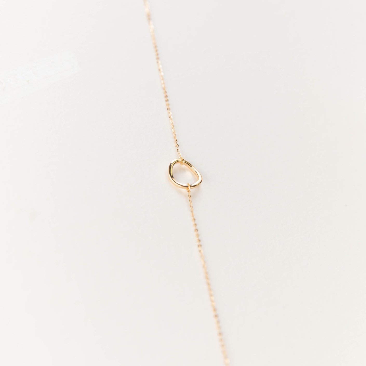 Expertly crafted with simplicity in mind, the Everything, In Time Necklace boasts a delicate organic circle pendant suspended on a minimal gold chain. The perfect accessory for effortless style, this necklace offers a subtle yet elegant touch to any outfit.