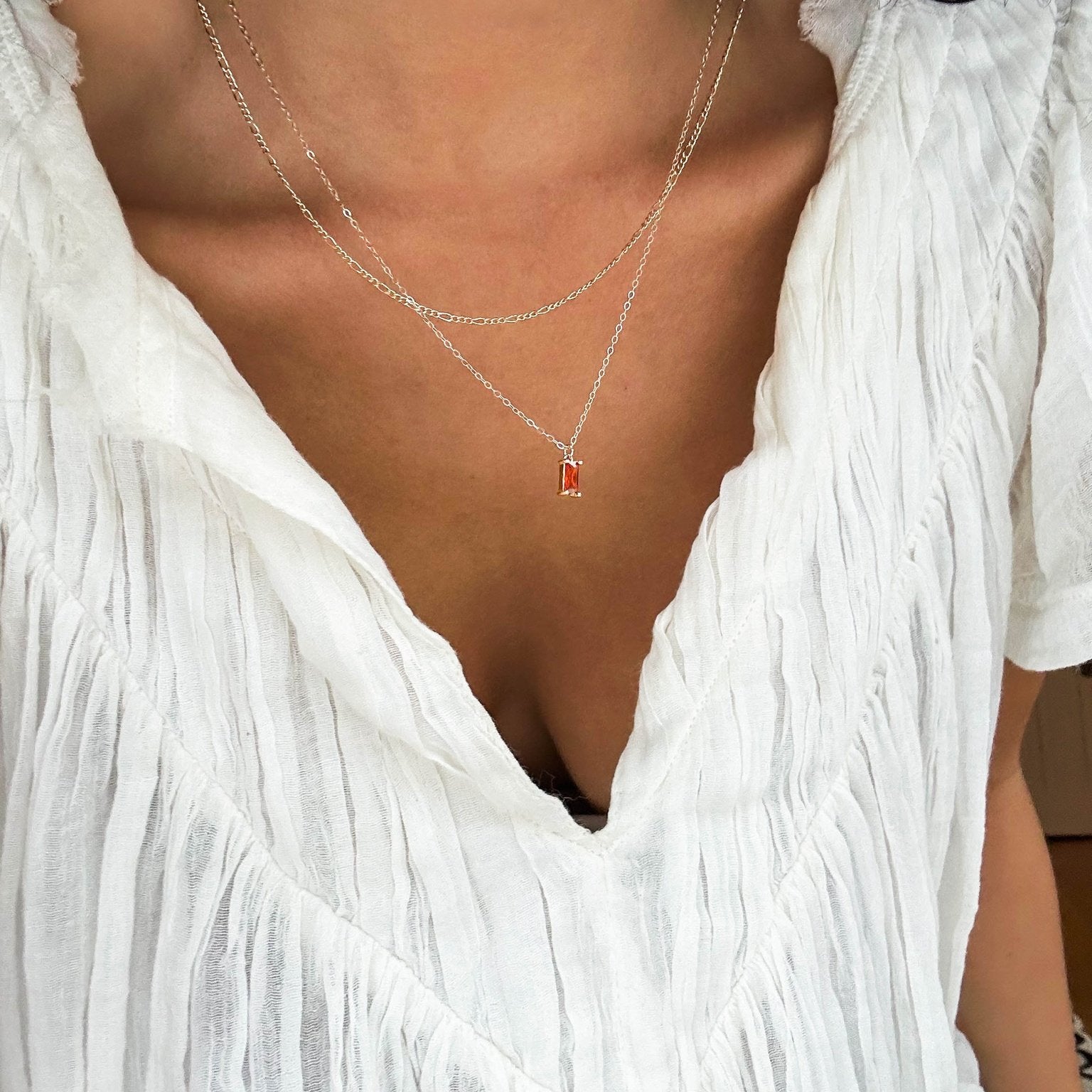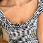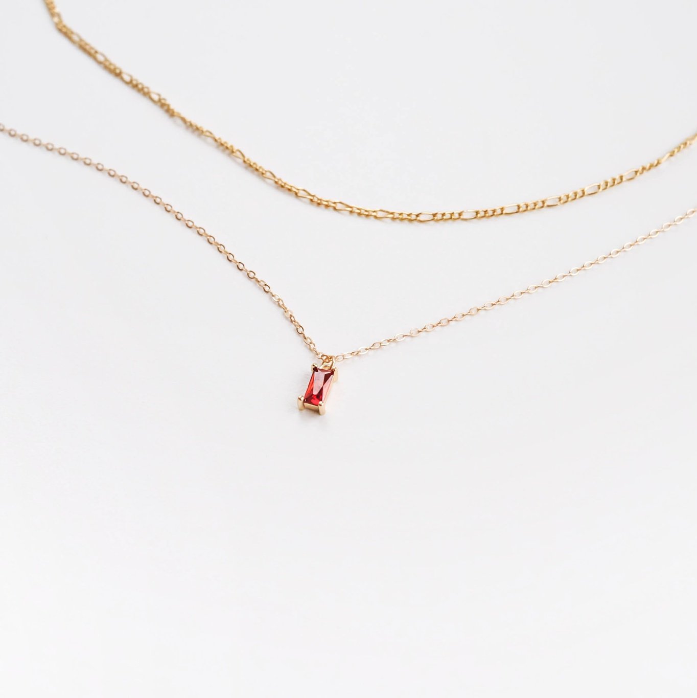 Our classic Colette Necklace and our stunning red Fate pendant stacked for an effortless addition to your everyday outfits.