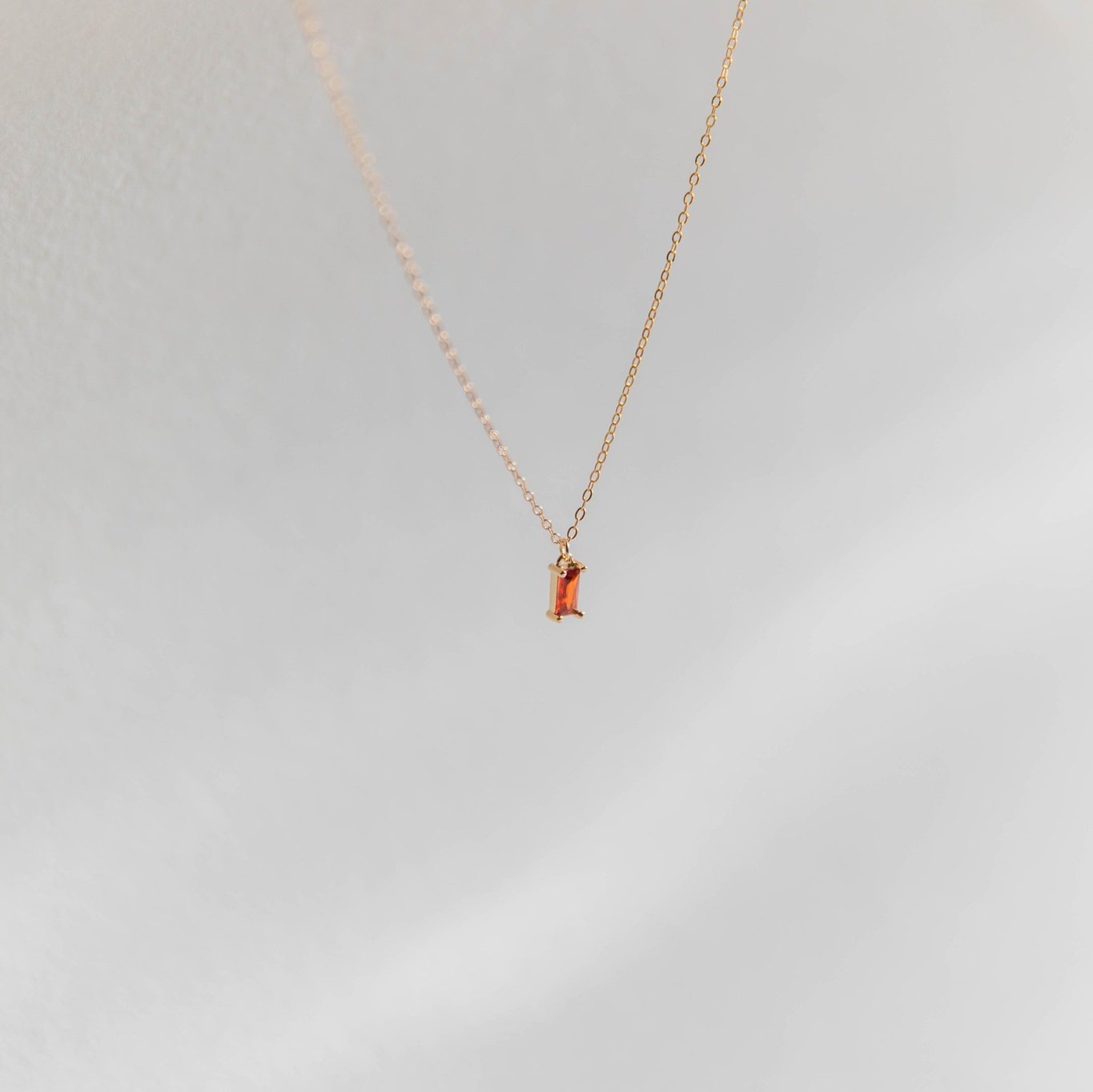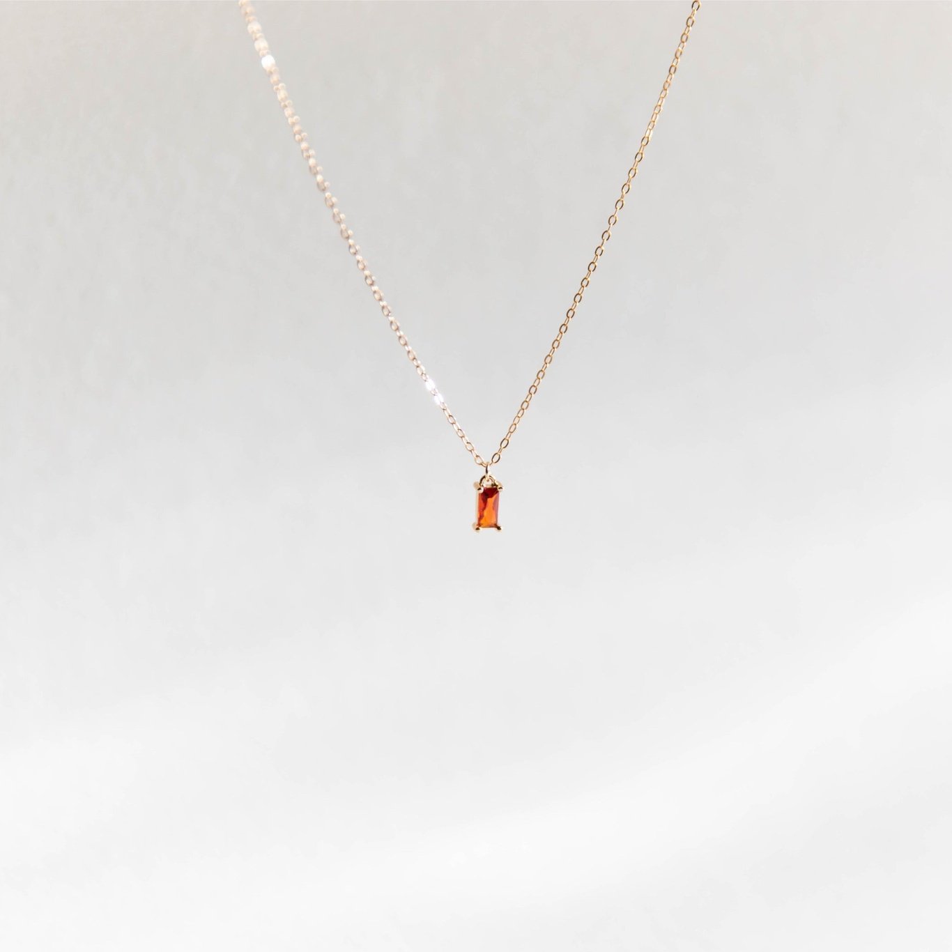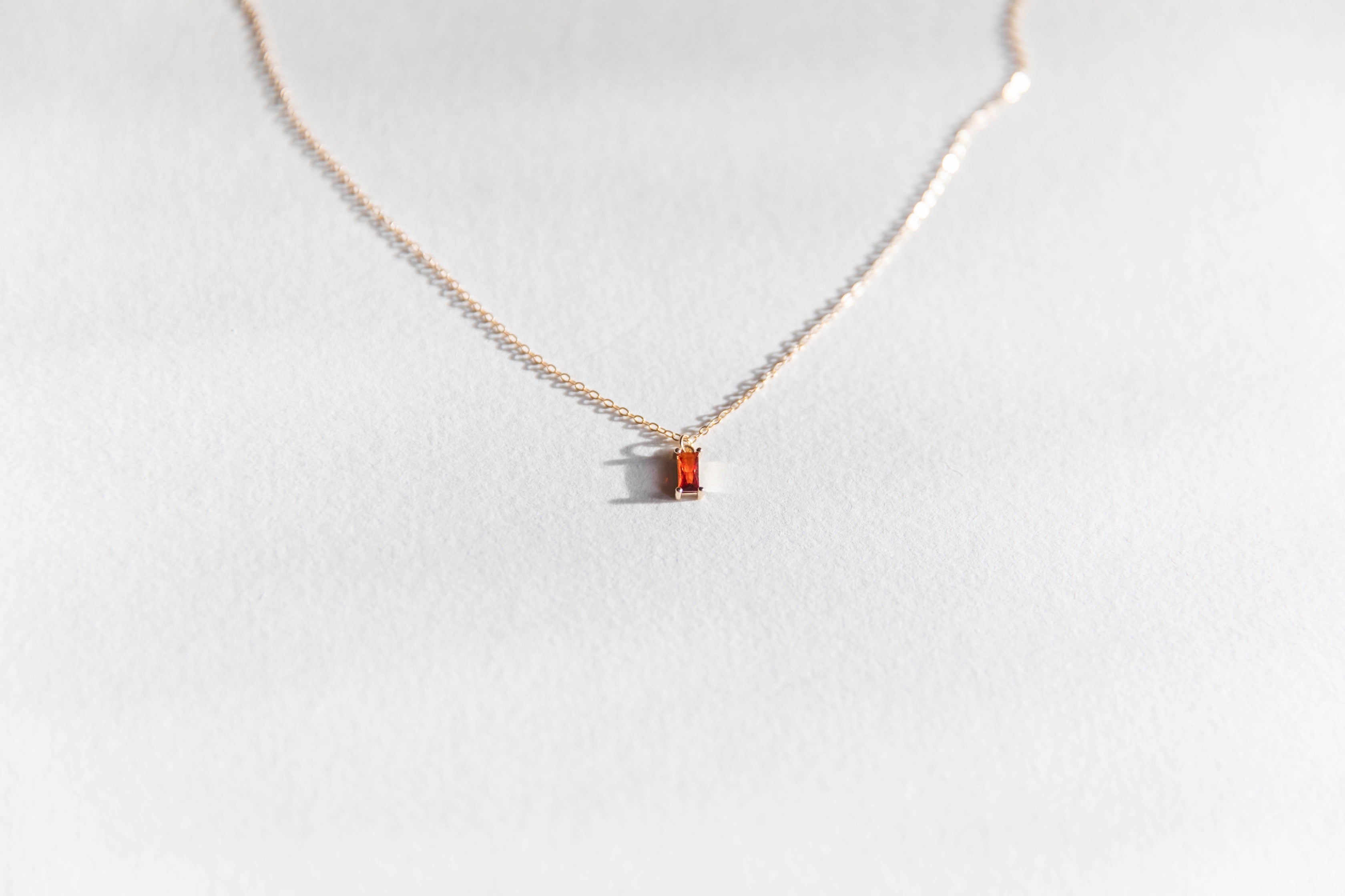 The Fate pendant highlights special moments with an air of destiny. A sunset stone necklace in a minimal setting for everyday comfortable wear and effortless layering