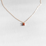 The Fate pendant highlights special moments with an air of destiny. A sunset stone necklace in a minimal setting for everyday comfortable wear and effortless layering
