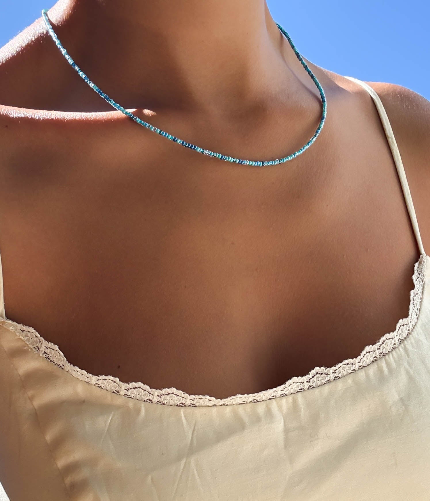 Inspired by the warmth of golden summer days, our handmade Searidge Mini Beaded Necklace is a charming addition to any jewelry collection. Its stunning seed beads create a playful yet elegant look that shines beautifully on its own or when layered with other LLUME favorites. This necklace is perfect for adding a little sparkle to your everyday outfits or dressing up for special moments with adorable flair.