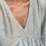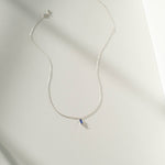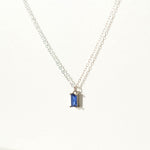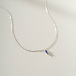 The necklace is a dainty tiny deep blue charm, tightly clamped in a 925 silver setting.