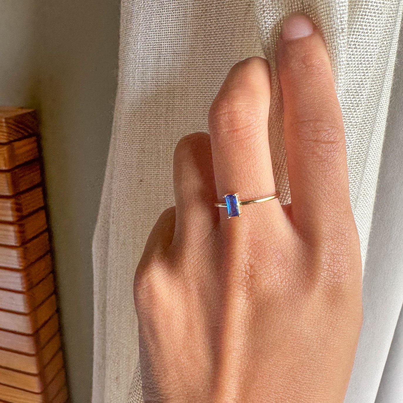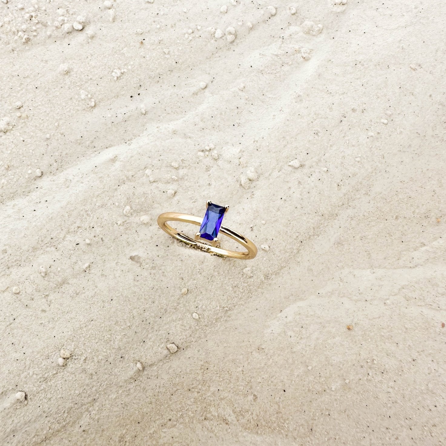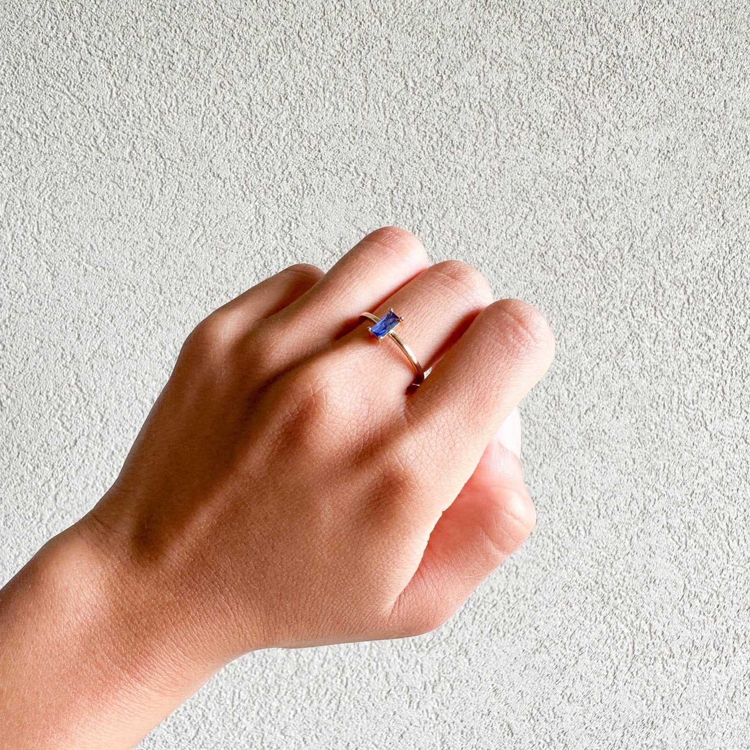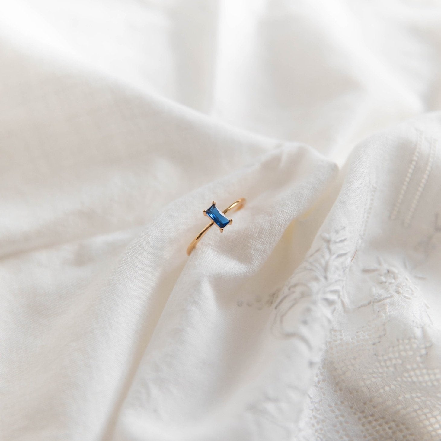 A beautiful blue sapphire stone in a dainty setting—perfect for every occasion and made to last. Easy to stack or pair with other Taylor pieces from LLUME.