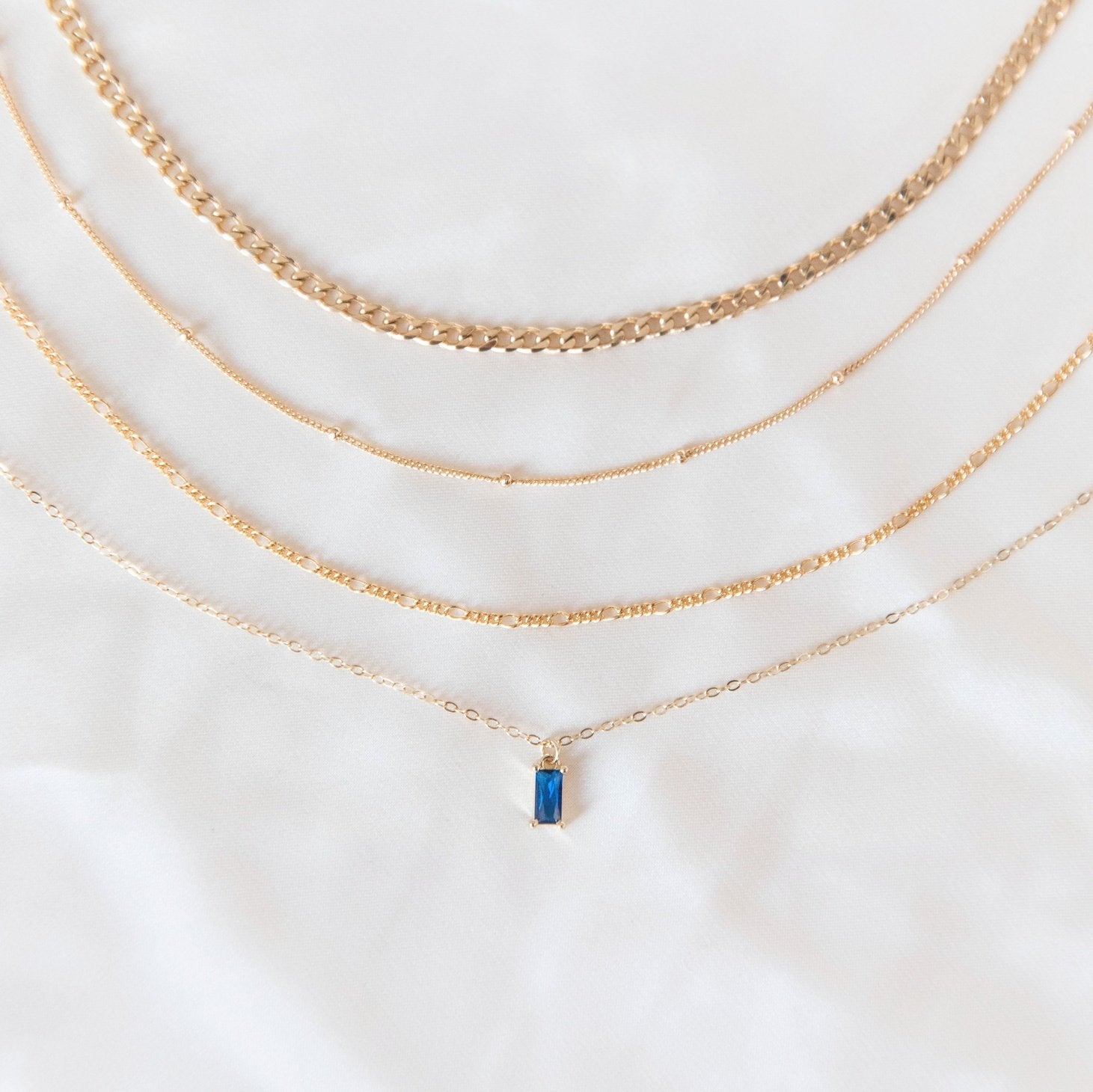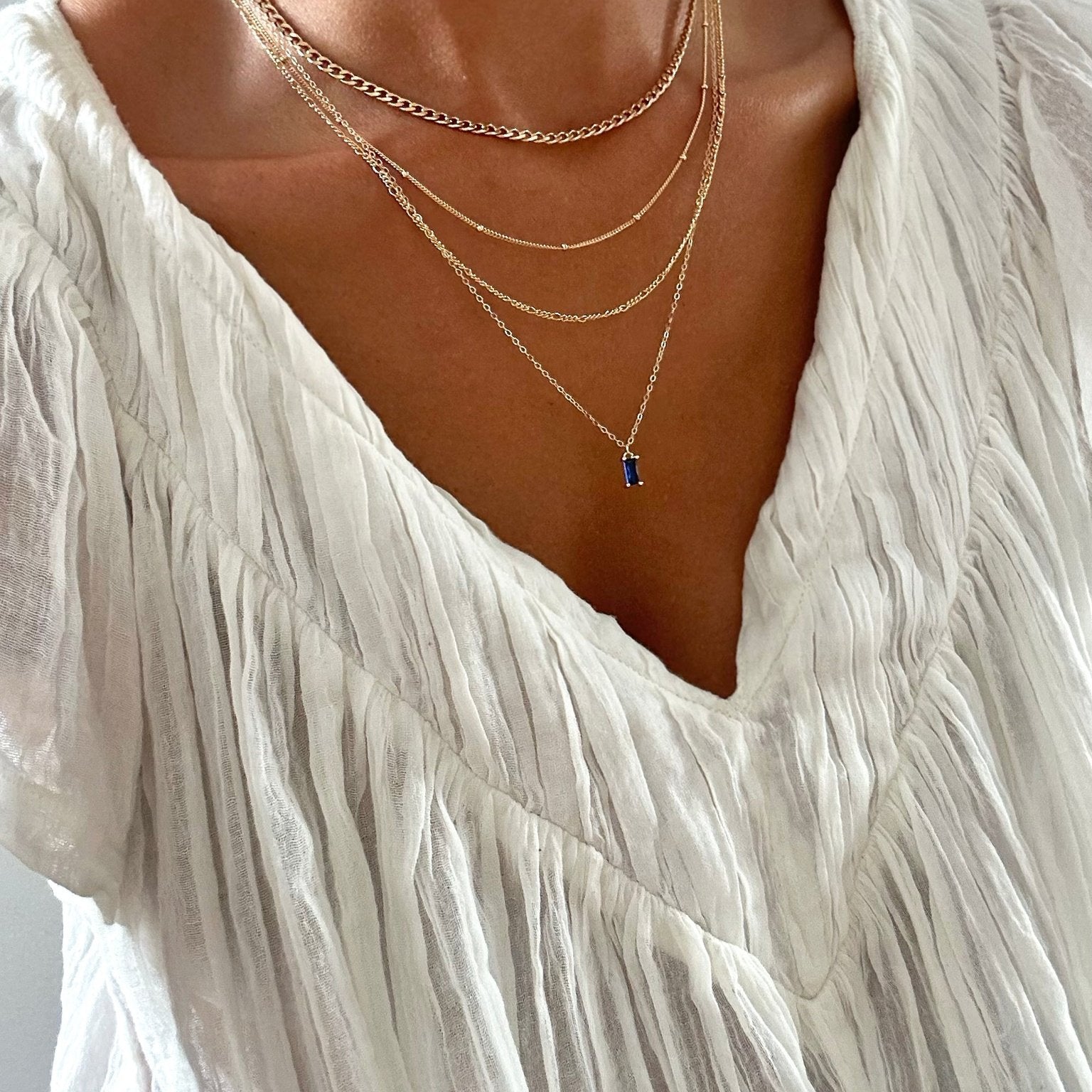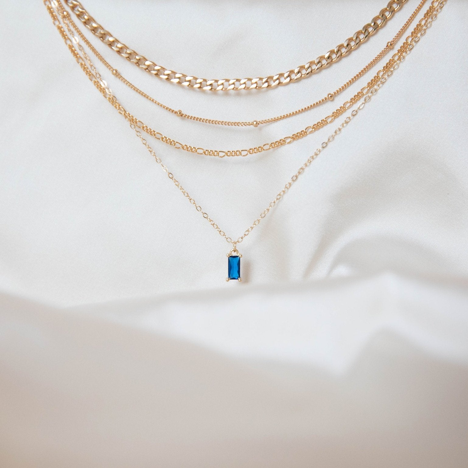 Four different chain textures and the gorgeous Taylor sapphire blue pendant for an effortless addition to your everyday outfits.